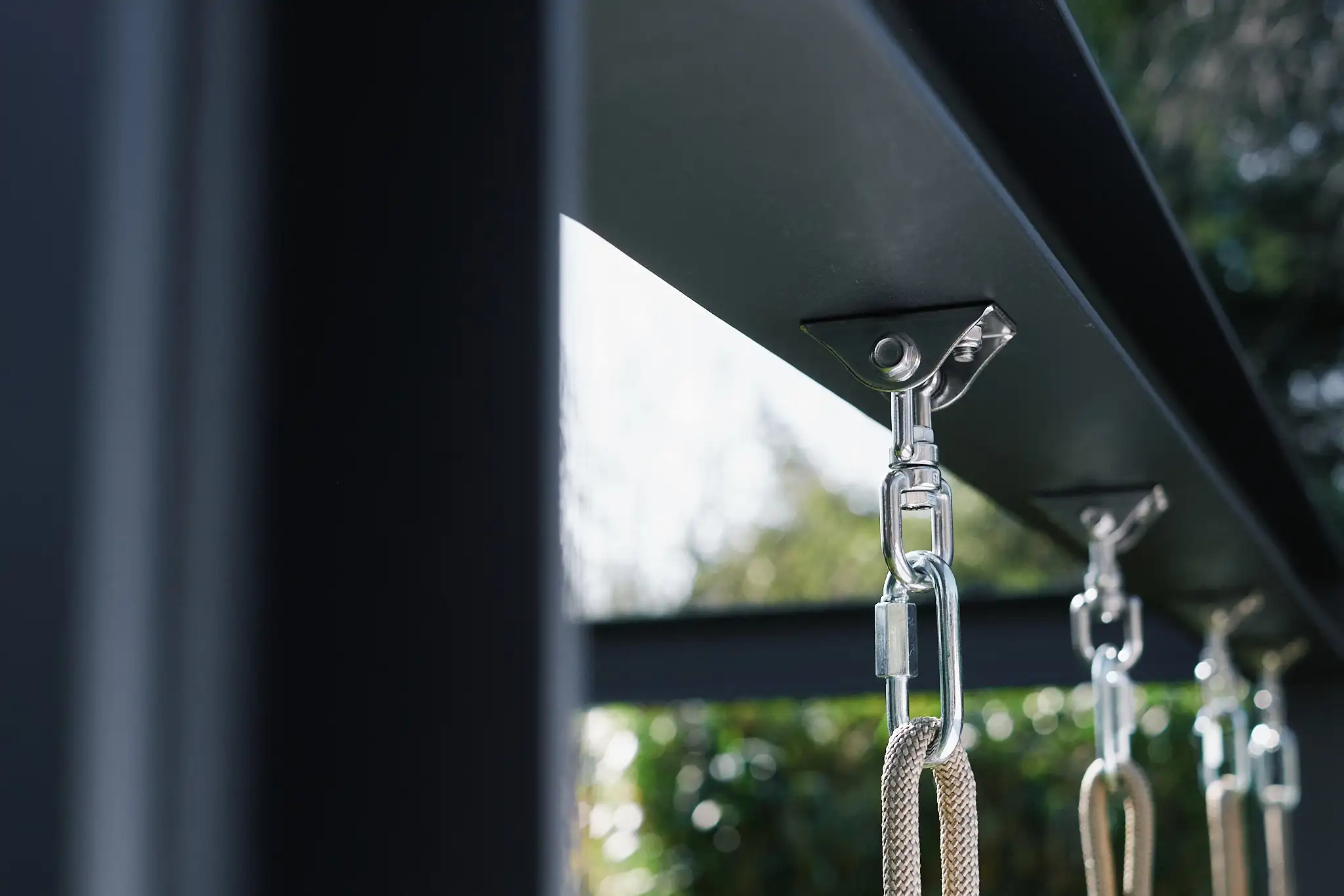 Erweitern Sie Ihre Schaukel um eine Klimm- und Turnstange. Diese wird an einer beliebigen Seite im 90° Winkel befestigt.