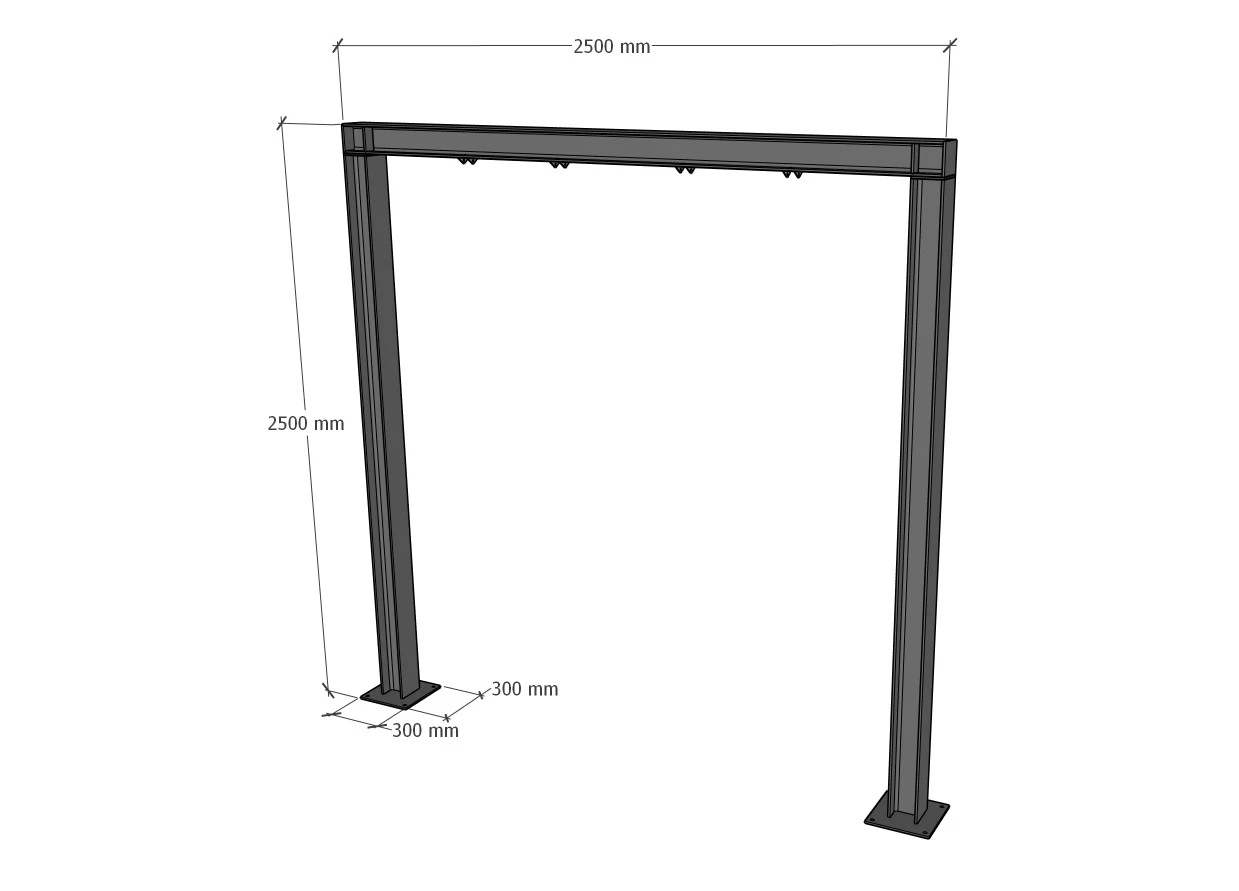 Maße: BxTxH 2500 mm x 120mm x 2500 mm