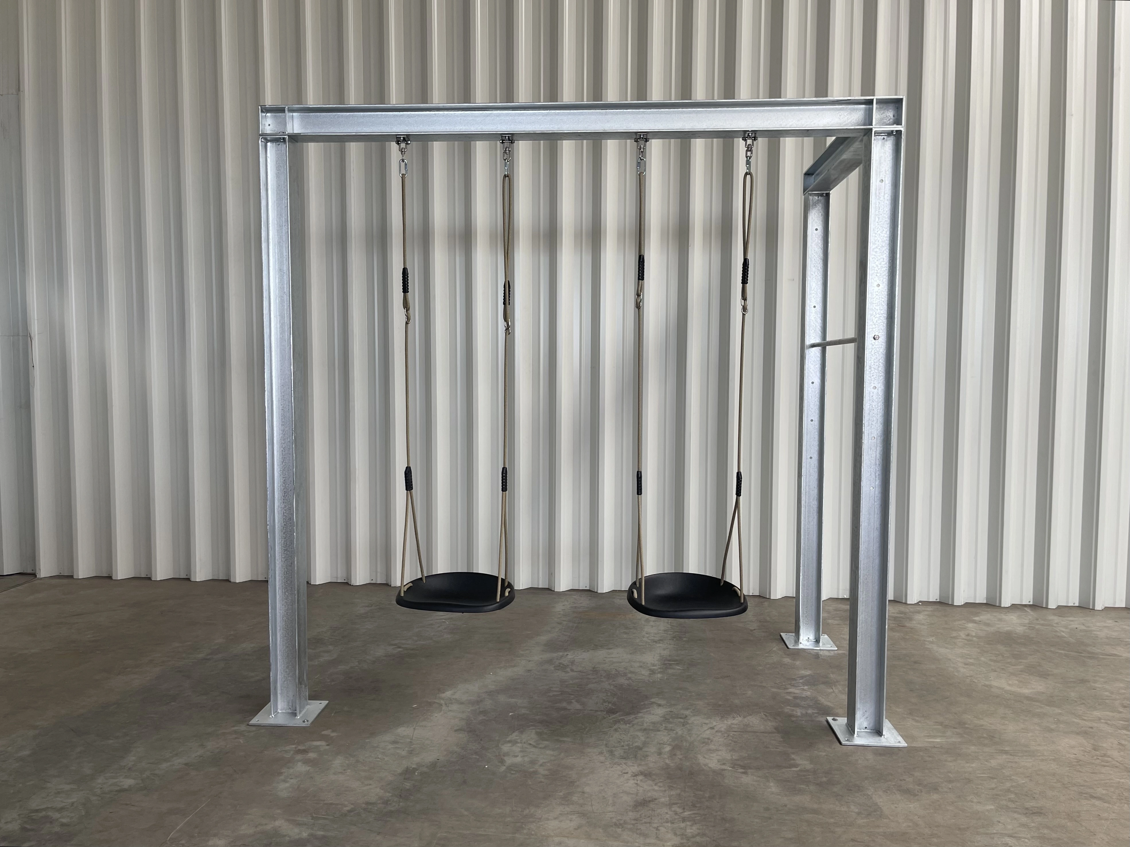 Wir liefern unsere Schaukeln standardgemäß in verzinkter Optik zur Selbstmontage.