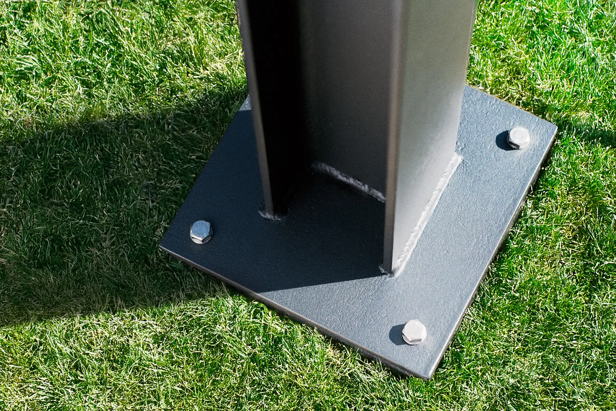 Unsere Schaukel wird auf Ihren tragfähigen Betonfundamenten verschraubt. Je Pfosten sind 4 Löcher vorgebohrt und können mit geeigneten Befestigungsmitteln montiert werden. Auf Anfrage fertigen wir die Pfosten auch in Überlänge zur Einbetonierung - sprechen Sie uns an.