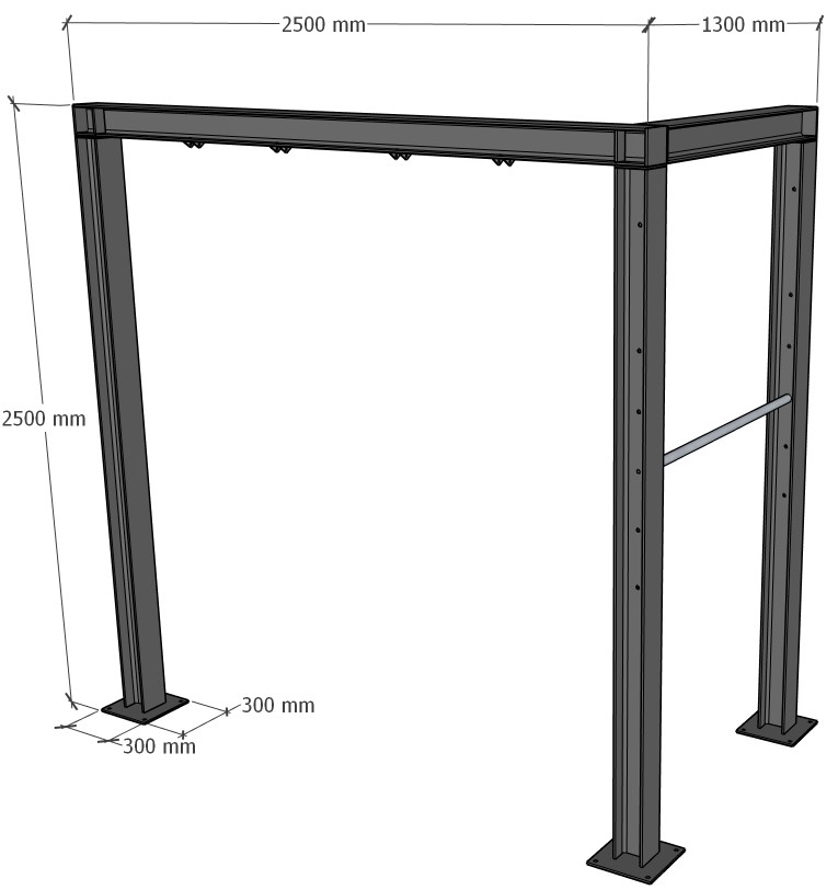 Maße: BxTxH 2500 mm x 1300mm x 2500 mm