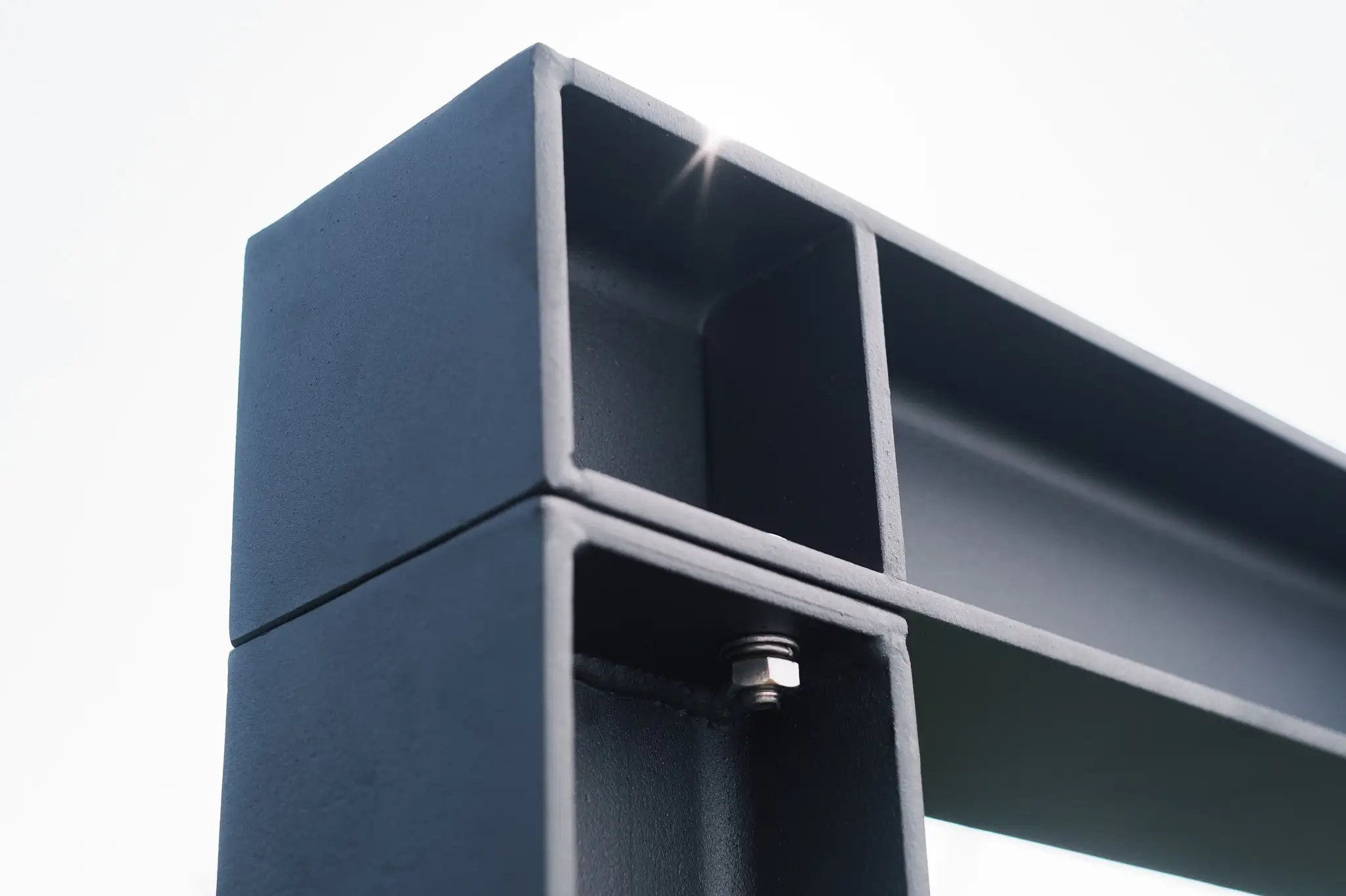 Intuitive Montage dank hochwertiger, passgenauer Vorfertigung. Alle benötigten Schrauben, Muttern sowie Unterlegscheiben des Schaukelgestells werden selbstverständlich mitgeliefert. Kein Bohren oder Anpassen der Stahlbauteile notwendig.