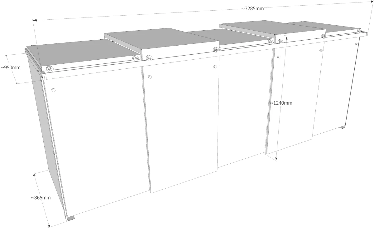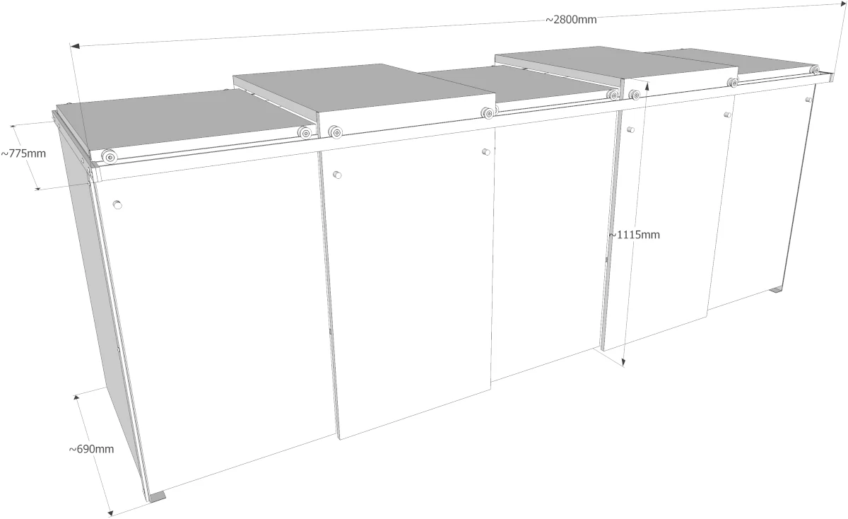 Mit verschiebbaren Front- und Deckelelementen sorgt die XLBOX für eine einfache und bequeme Bedienbarkeit. Gleichzeitig ist die Konstruktion äußerst Robust und kann auf eine lästige Bodenschwelle verzichten.