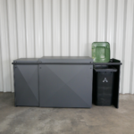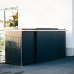 Unsere Mülltonnenboxen sind bewusst platzsparend konstruiert. Durch das Schiebesystem können die Tonnen selbst in sehr beengten Bereichen sicher befüllt werden. Auch die Ein- und Ausfuhr der Tonnen erfolgt äußerst raumsparend – beispielsweise, wenn ein Fahrzeug direkt vor der Box parkt. Dies bietet einen deutlichen Vorteil gegenüber Konstruktionen mit klassischen Drehtüren.