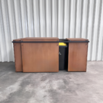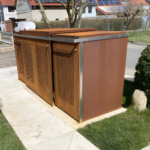 hochwertige, langlebige Systeme aus Stahl, in dieser Ausführung aus Cortenstahl, ausgelegt für vier Mülltonnen.