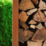 Holzlager Corten wird aus wetterfestem Cortenstahl gefertigt. Die charakteristische Edelrost-Patina entsteht durch natürliche Bewitterung und schützt den Stahl dauerhaft. Alle Bauteile sind präzise verschweißt, die Konstruktion ist massiv, stabil und frei von sichtbaren Schrauben. Das optionale Vordach leitet Regenwasser zuverlässig ab und sorgt für trockene Lagerbedingungen.