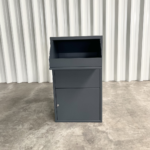 NILS Paketbox besteht aus sendzimirverzinktem Stahl, der in Feinstruktur matt pulverbeschichtet wird. Diese Oberfläche schützt dauerhaft vor Korrosion und ist kratzfest sowie farbstabil. Die stabile Einwurfklappe ermöglicht eine sichere Paketannahme, während die Konstruktion den Zugriff von außen zuverlässig verhindert. Dank großzügiger Dimensionen finden mehrere Sendungen Platz (bis ca. 25 × 54,5 × 29,5 cm / 27,5 × 42 × 26,5 cm / 19,5 × 55 × 52 cm).