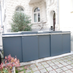 XLBOX – exklusive Mülltonnenbox aus pulverbeschichtetem Stahl für fünf Mülltonnen