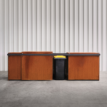 hochwertige, langlebige Systeme aus Stahl, in dieser Ausführung aus Cortenstahl, ausgelegt für sechs Mülltonnen.