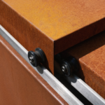- Frontvarianten bei Cortenstahl: glatte Oberfläche oder quadratförmige Lochung